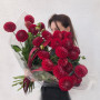 На фото букет из 29 красных георгин. В составе: георгина 29 шт, дизайнерская упаковка 2 шт, атласная лента 1 шт, . Все цветы свежие и ароматные, букет красиво оформлен и отлично подходит для подарка. Доступна доставка цветов или самовывоз.