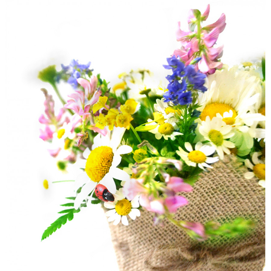 Необычайно летняя композиция из полевых ромашек, виктории и игривой хризантемы сантини, словно трепетная первая любовь, расскажет Вашей избраннице о Ваших самых телых и глубоких чувствах, и заставит вспомнить её о теплых летних днях, когда Вы приносили ей охапку ромашек с ближайших полей, и Ваши сердца заполняла большая искренняя любовь.